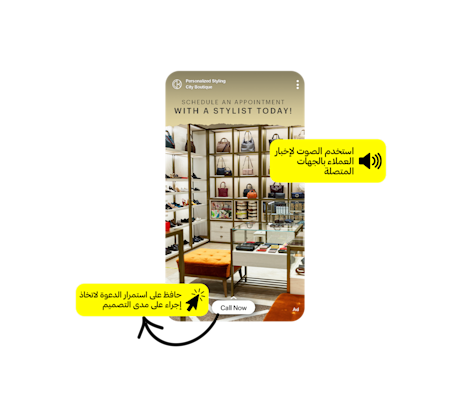 استخدم السحب لأعلى للاتصال لجذب العملاء المحتملين والمبيعات والحجوزات لنشاطك التجاري.
