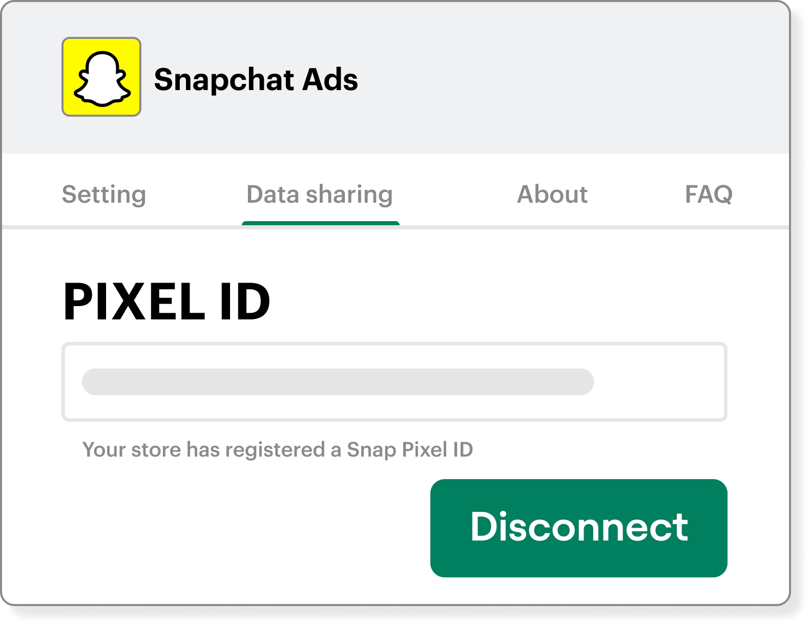 6. In the Shopify UI, under Snapchat Ads, click on the Data Sharing tab. Your pixel id should already be connected. If not, refresh the page.