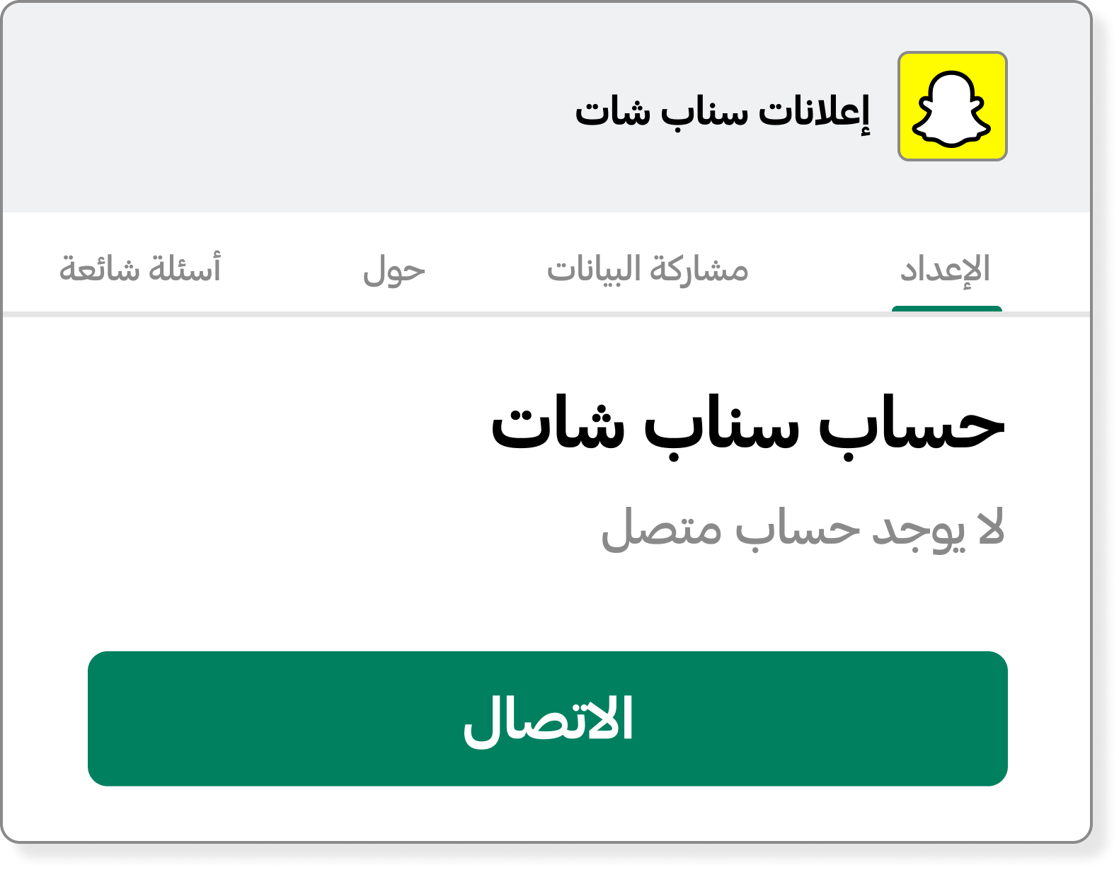 4. ضمن منصة Shopify، انتقلوا إلى إعلانات سناب شات، ضمن علامة تبويب الإعدادات وانقروا على الاتصال (ينبغي أن يشبه ذلك هذه العملية)
