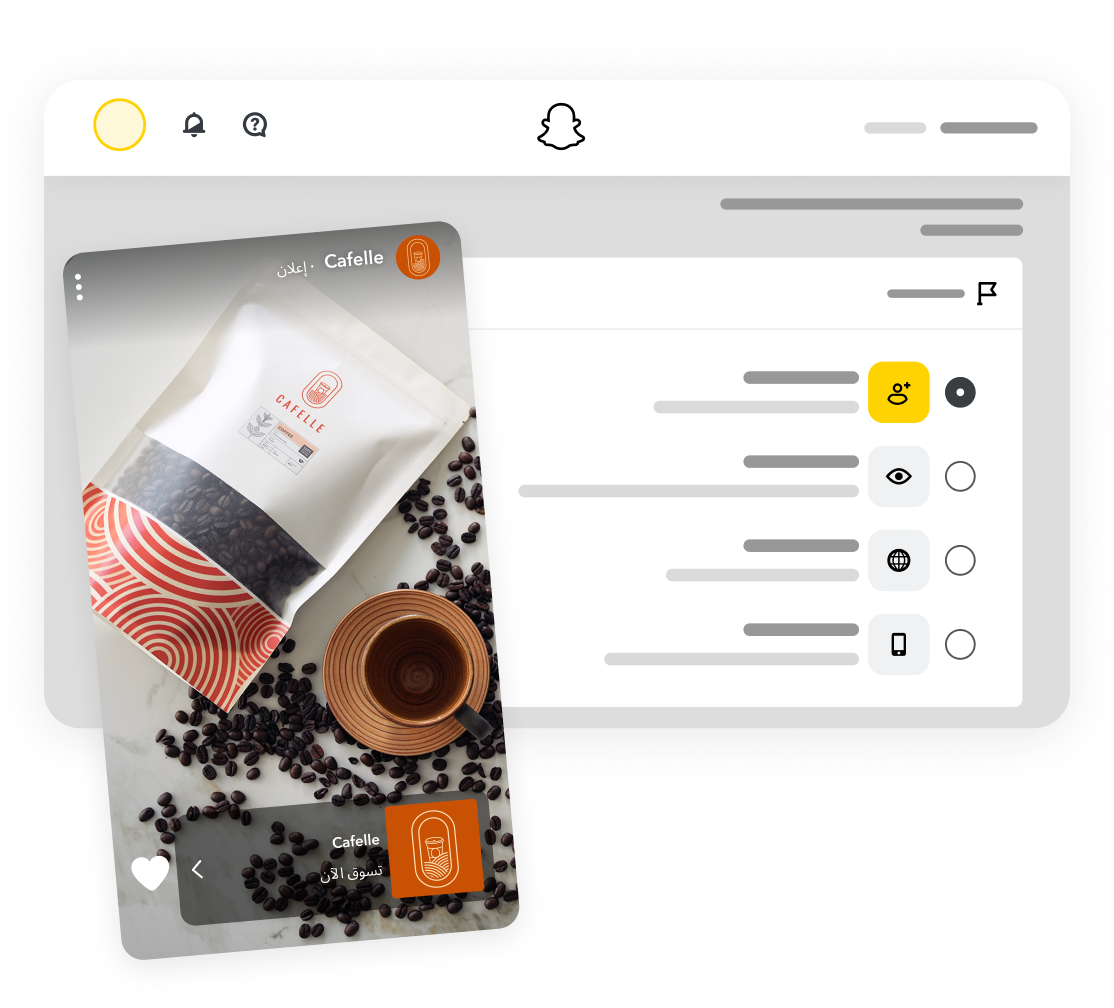 اختاروا واحداً من الأهداف التالية لمعرفة كيفية إعداد حملاتكم الإعلانية لتحقيق النجاح على سناب شات.