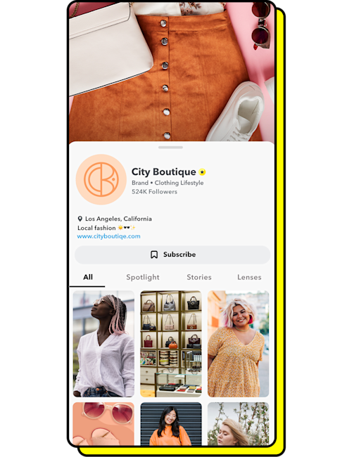 Public Profiles give businesses a permanent presence on Snapchat, allowing you to be discovered, grow a subscriber base, attract new customers, and sell products.