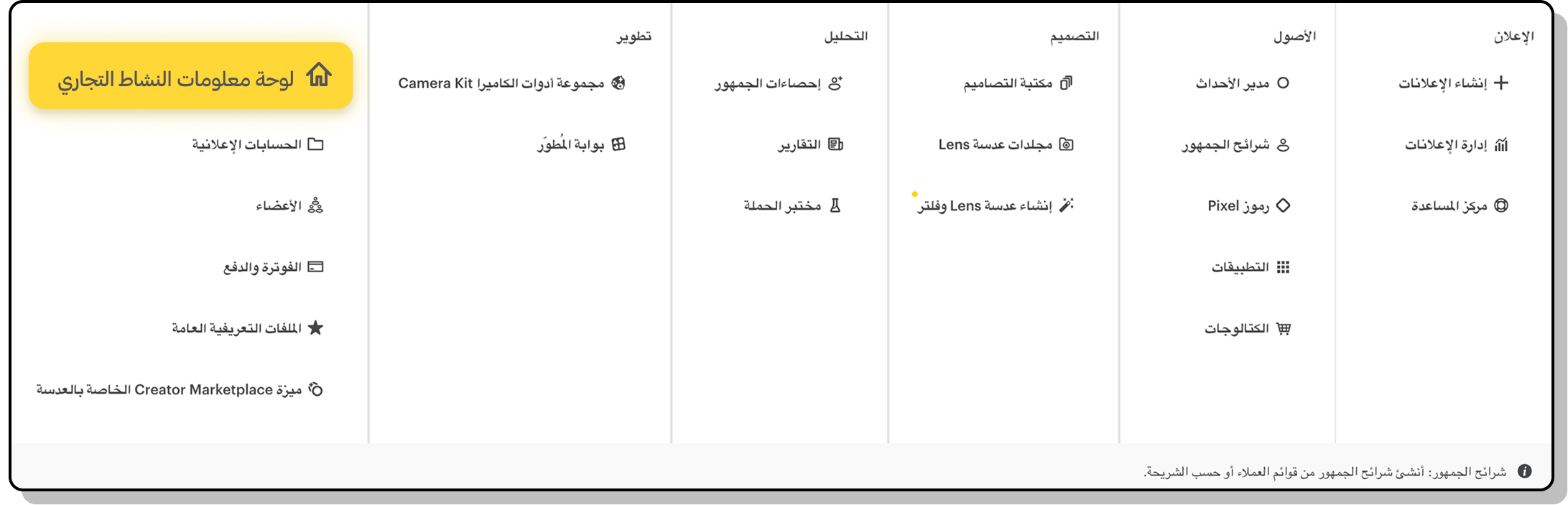 في "منصّة "إدارة الإعلانات"، انتقلوا إلى لوحة معلومات النشاط التجاري ضمن القائمة المنسدلة أعلى جهة اليسار.