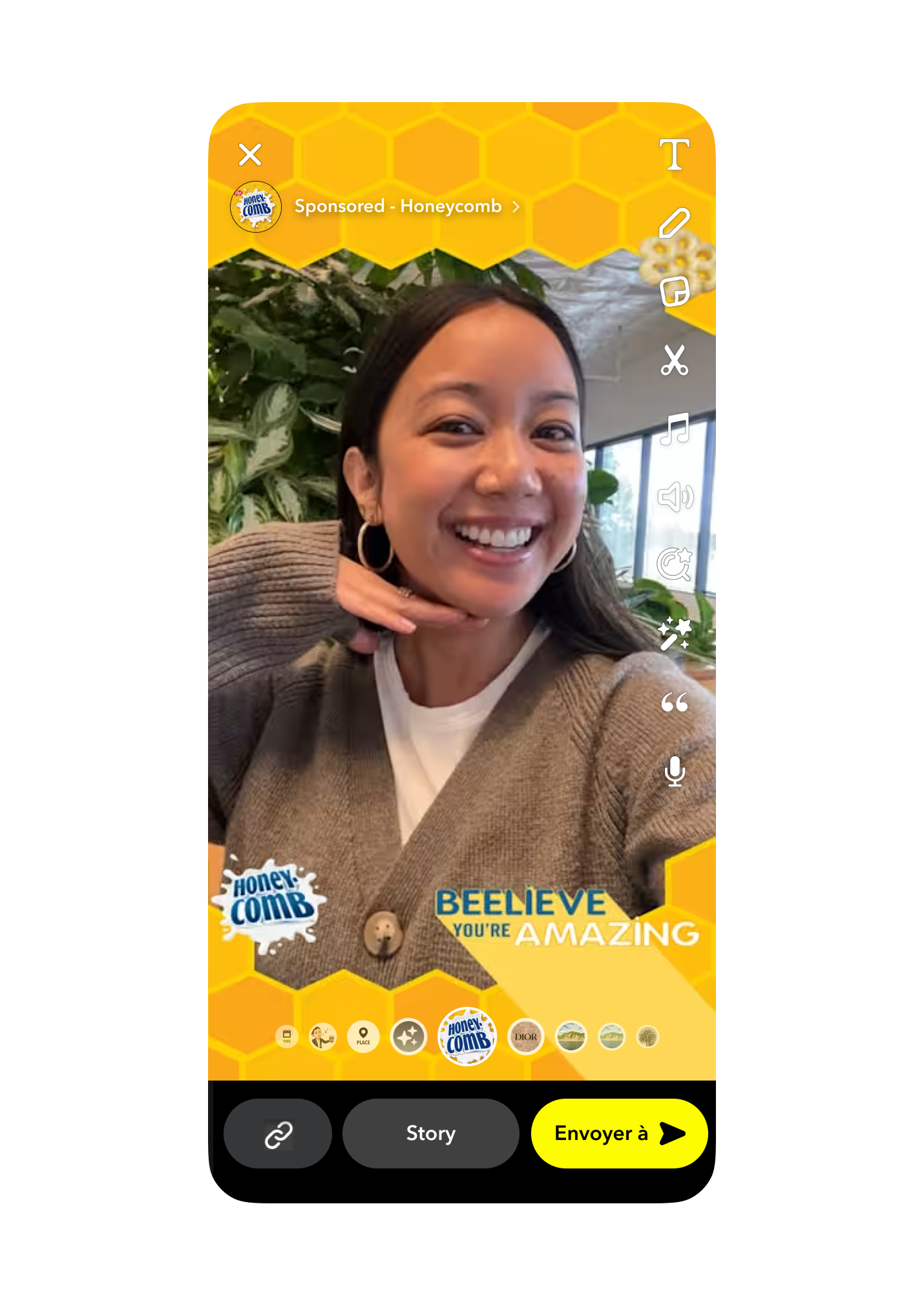 Découvrez les différents formats publicitaires disponibles sur Snapchat, et choisissez les publicités qui mettront le mieux en valeur votre marque et vous permettront d'entrer en contact avec une audience engagée.