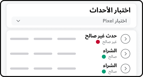 يُمكنكم أيضًا التحقق من صحة أحداث Snap Pixel باستخدام أداة اختبار حدث Pixel. سيُساعدكم ذلك على معرفة ما إذا كان تكامل Pixel قد تم إعداده بشكل صحيح وما إذا كانت أحداث Pixel قد وصلت إلى خوادم سناب شات بنجاح. راجعوا دليل مستخدم اختبار حدث Pixel لمعرفة كيفية التحقق من صحة أحداث Pixel في سناب شات.