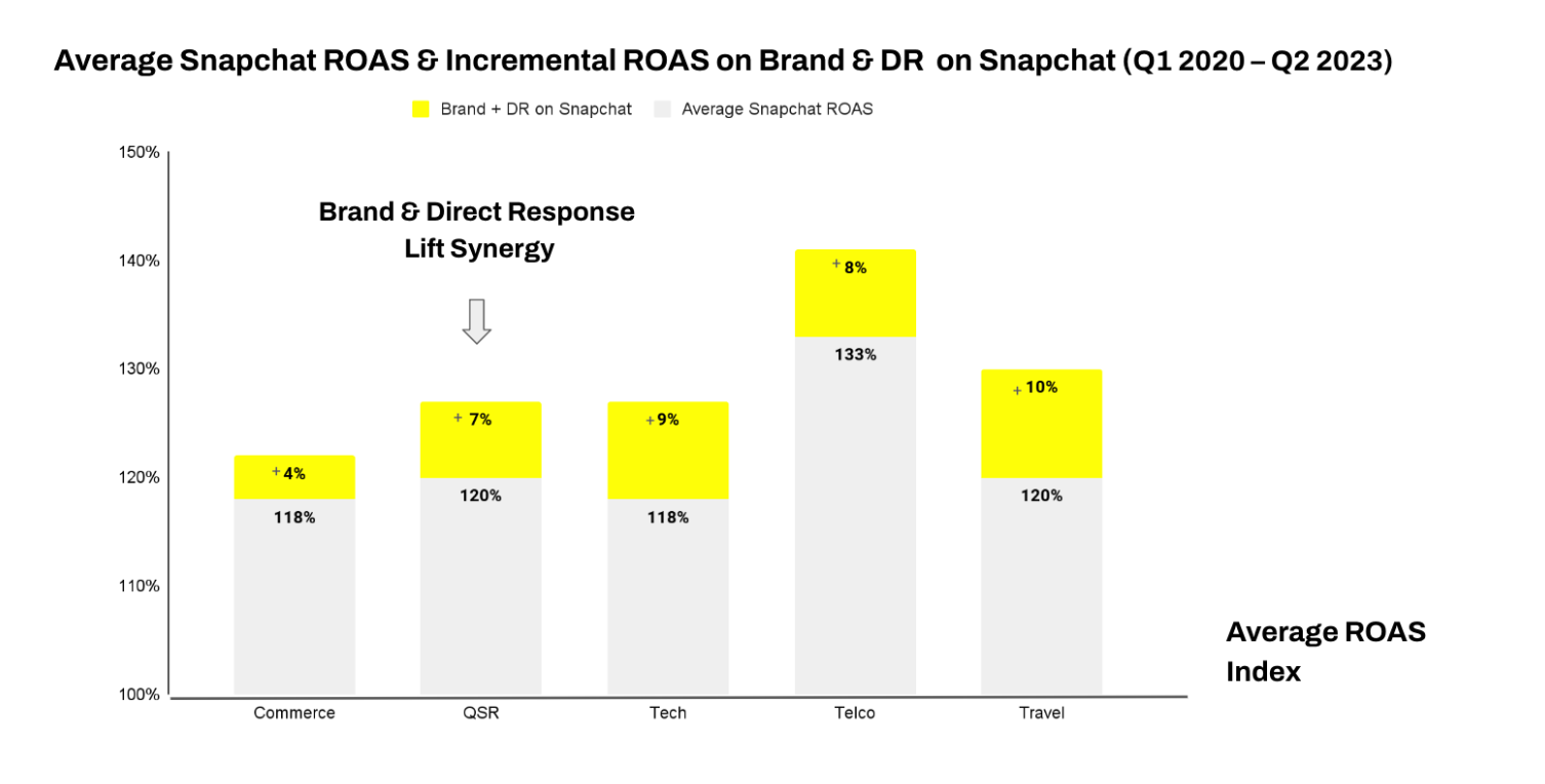 In order to shed light and provide Snapchat’s perspective around the brand vs. DR debate, Snapchat commissioned a meta-analysis with TransUnionto evaluate the Return on Ad Spends (ROAS) in driving sales and to specifically look at how brand and DR campaigns work together.