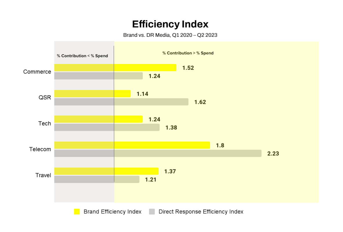 Although the share of spend between brand and DR was different per category, we found that across the board, there is no tradeoff, and both campaign strategies were efficient in driving sales. Both the brand and DR campaigns contribute disproportionately more sales relative to the share of budget each campaign type receives.
