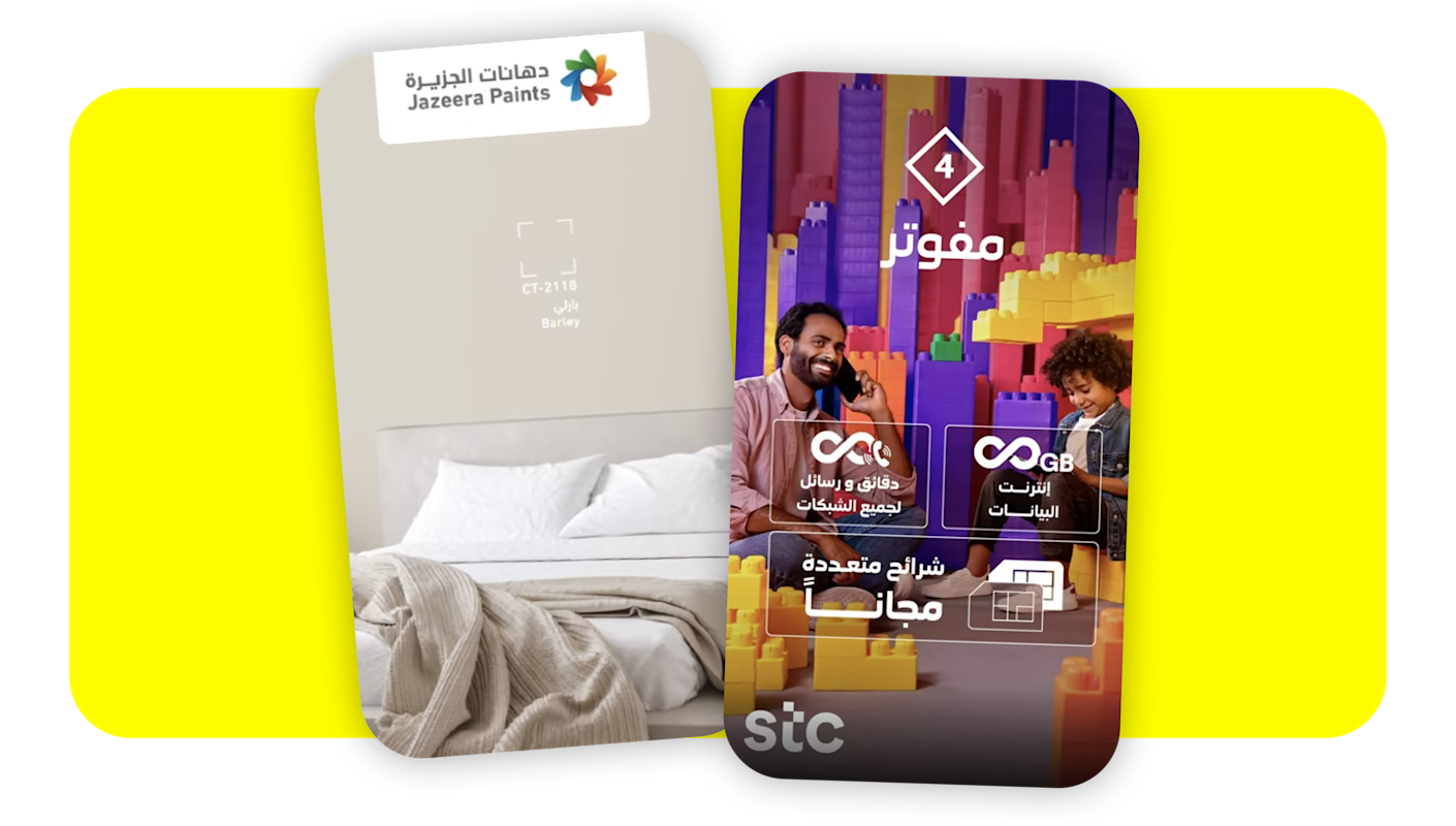 إذا كنت تبيع منتجات أو خدمات للفئات الشبابية، فإن سناب شات هو المكان المثالي لإطلاق أحد فصول إعلانات التوعية بالعلامة التجارية ضمن قصة نشاطك التجاري. يستخدم 90% من الشباب سناب شات، حيث يفتحون التطبيق أكثر من 30 مرة يوميًا لمشاركة تفاصيل حياتهم مع أصدقائهم المقربين وعائلاتهم عبر أكثر من 4 مليار رسالة يومية.³ نوفر أطر الإنترنت التي تحتاج علامتك التجارية إلى الوصول إليها.