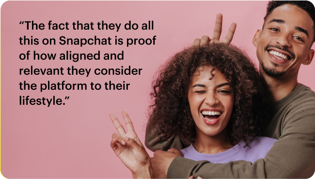 “We have seen Saudi Arabia open up and provide more personal liberties, and the youth are at the forefront of this movement. This is redefining how they communicate and express themselves. More than ever, they now have the opportunity to share with the world their authentic selves, be true to who they are and celebrate moments that matter to them in ways that weren't possible before,” says Dina Al Sabbagh, Marketing Insights Lead for MENA. “The fact that they do all this on Snapchat is proof of how aligned and relevant they consider the platform to their lifestyle.”