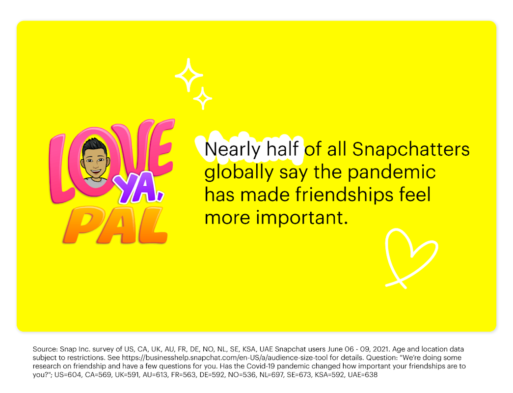 Real friends have always held an important place in Snapchatters’ lives, and they’re ready to make up for lost time this summer as the world edges back to a sense of normalcy. We surveyed Snapchatters to find out how their friendships have changed over the past year, how they like to communicate with their pals, and how they’re using the app to stay connected.
