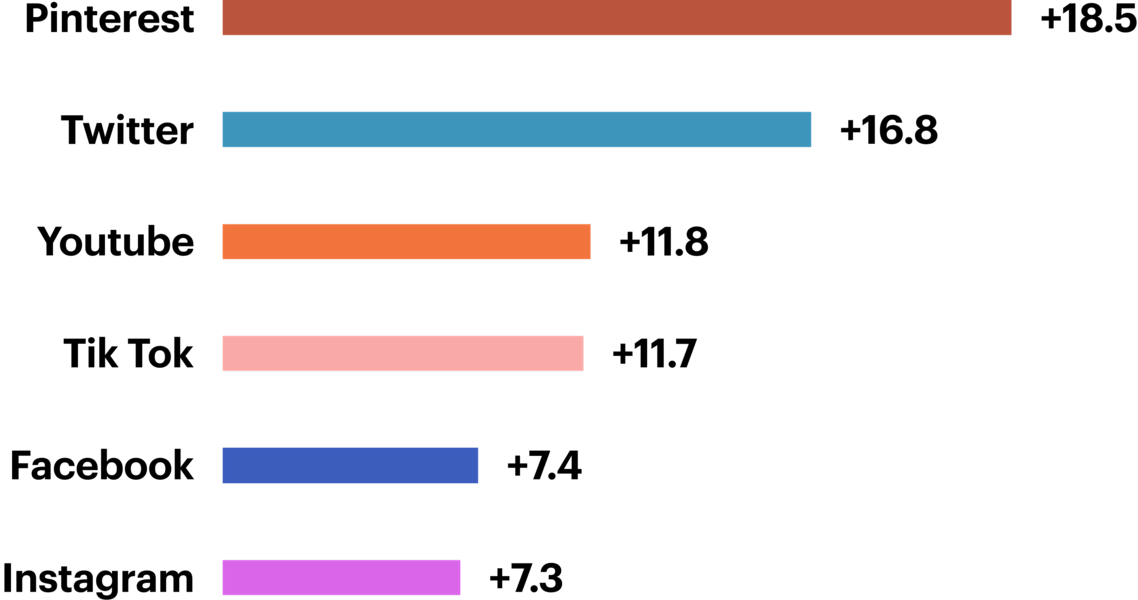 élevé que les autres plates-formes 1,6 fois plus élevé que Facebook 1,5 fois plus élevé que Tiktok 1,5 fois plus élevé qu'Instagram¹¹
