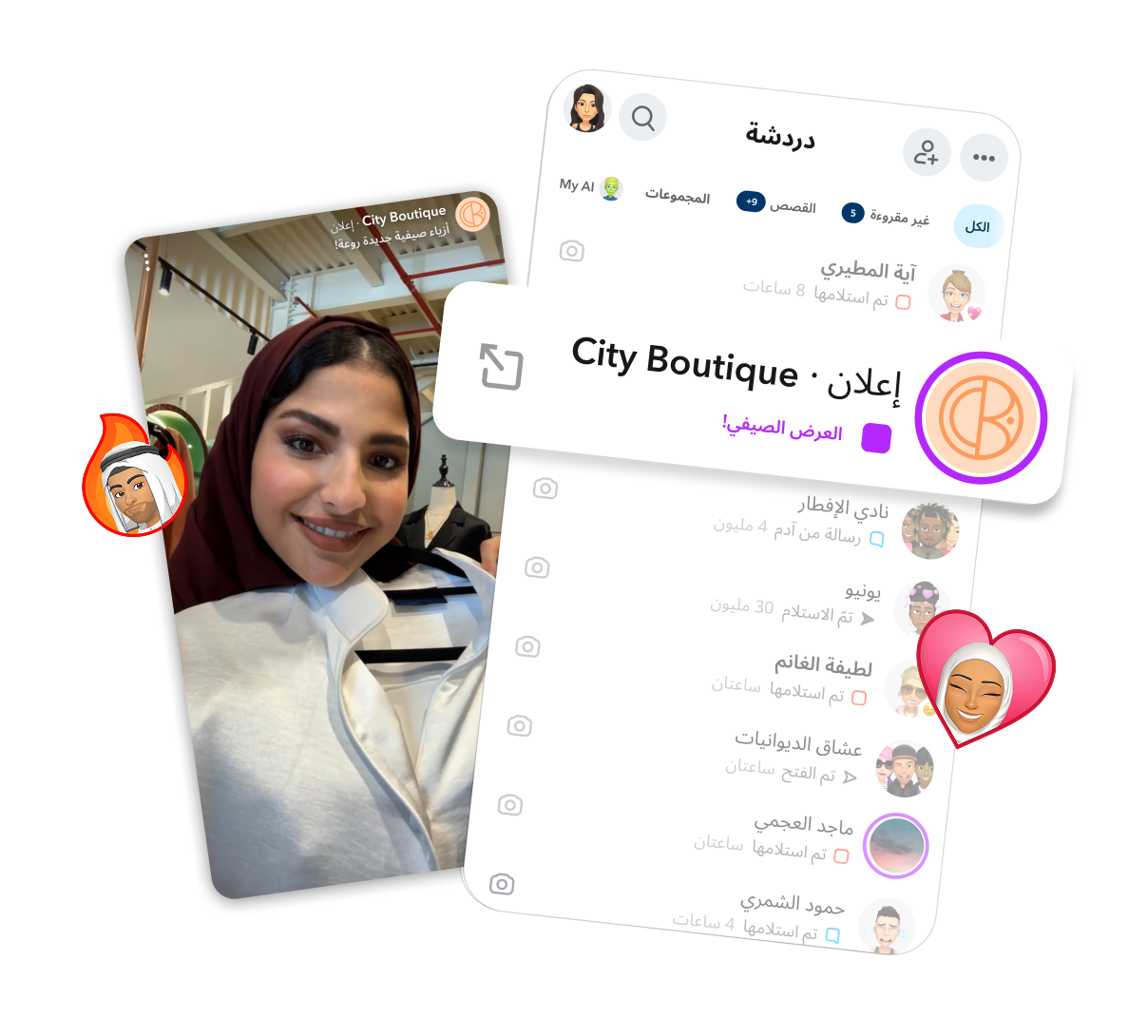 يقدم سناب شات حلولًا إعلانية بسيطة وفعالة مصممة لمساعدة علامتكم التجارية في الوصول إلى الجمهور المناسب في الأوقات الأكثر أهمية.